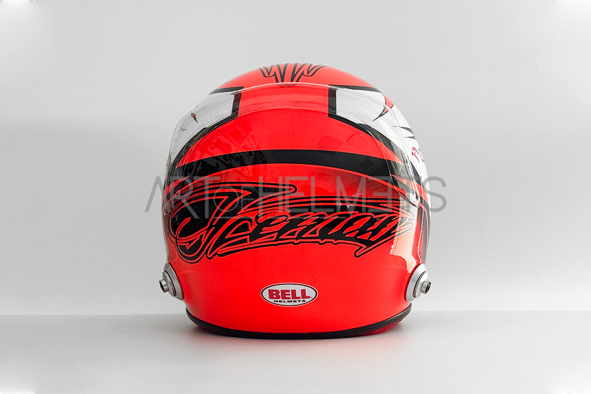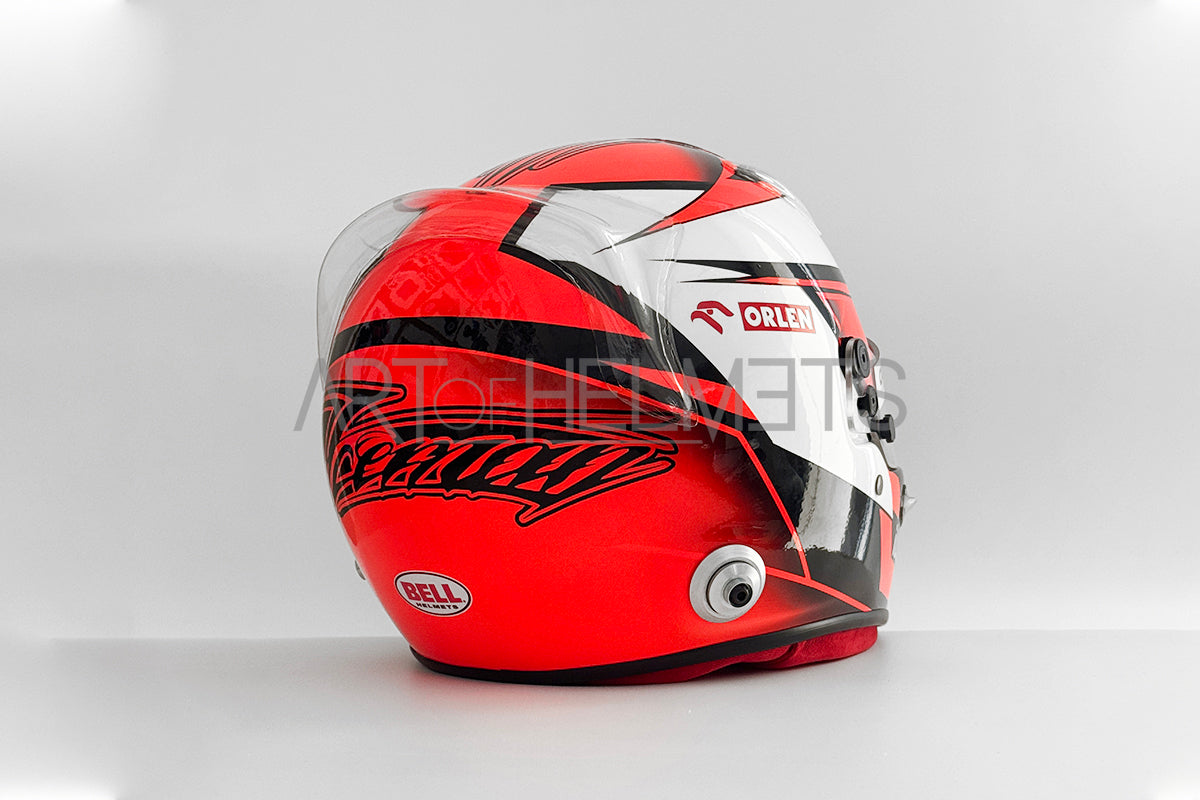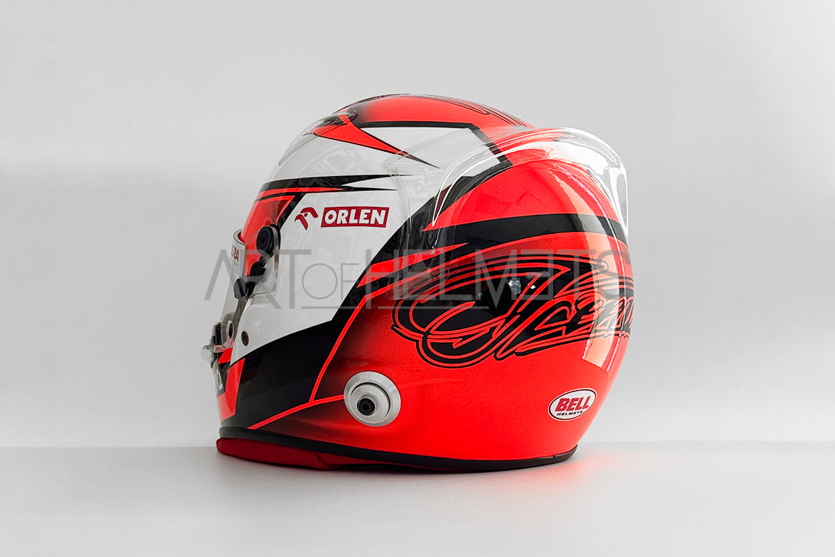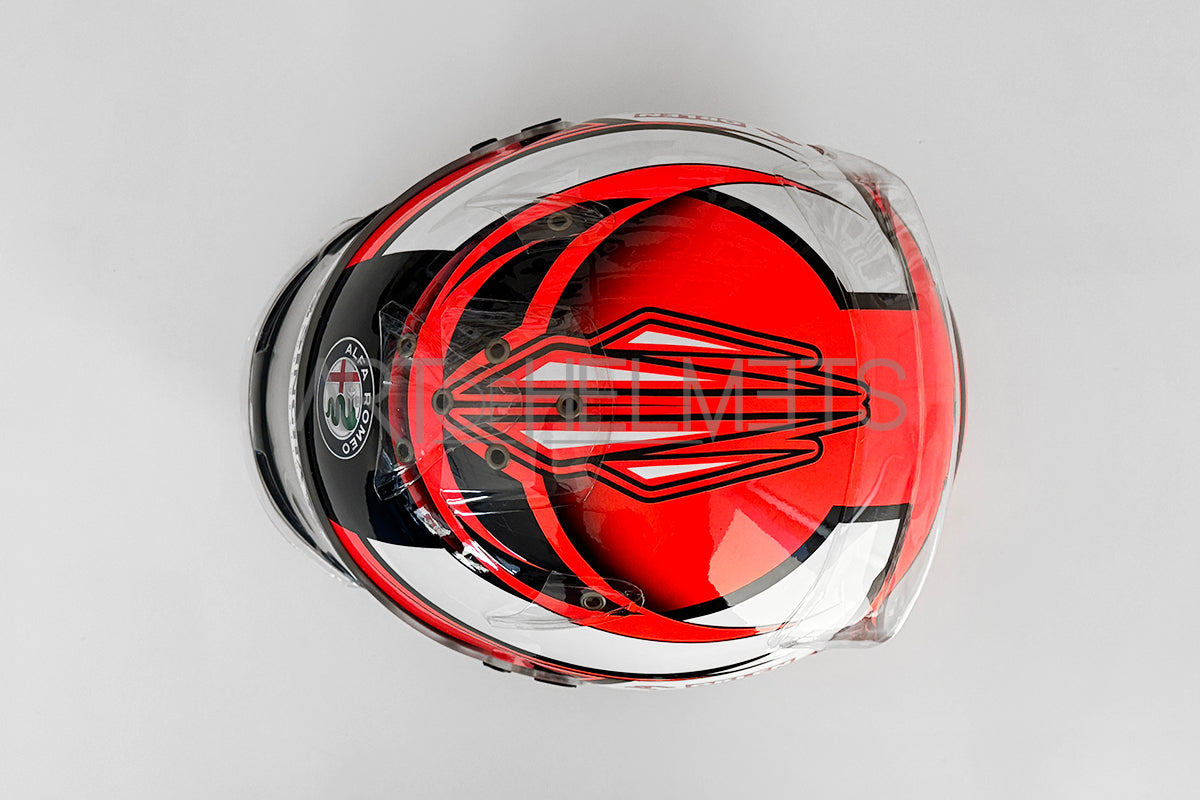 Clean lines and precise geometric detailing gave the design a modern, refined look, while subtle personal elements and the Finnish flag preserved Räikkönen’s understated identity. The helmet integrated seamlessly with the Alfa Romeo C39 livery, creating a powerful and cohesive visual statement on track.